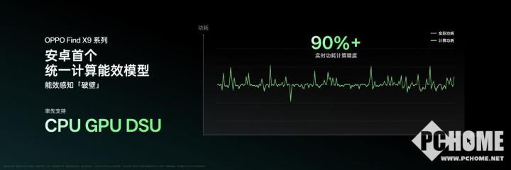 为了解决这些问题,此前 OPPO 带来了安卓首个精准算力单元集功耗模型,实现对 CPU、GPU 等 SoC 子系统功耗信息的体系化。全新一代 OPPO 潮汐引擎进一步将其升级为安卓首个自主研发的 “统一计算能效模型”,首次实现了对 CPU、GPU、DSU 计算子系统的建模,更全面地覆盖处理器核心计算单元的功耗表现,在各用户场景中实现了 90% 以上的功耗计算精度。通过对计算子系统功耗更完整和精准的建模,减少无效的数据访问与供给,使天玑 9500 的强劲算力实现前所未有的高效利用,让芯片能效的认知从推算走向计算。