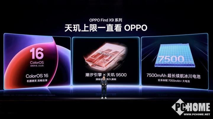 除了搭载全新一代 OPPO 潮汐引擎,配合旗舰天玑 9500 平台,带来更精准、更高效、更全面、更稳定的顶级性能体验之外, Find X9 系列还标配超过 7000mAh 的大容量冰川电池,带来持久续航保障,配合全新更流畅更智能的 ColorOS16 系统,三者相辅相成,从性能突破、持久续航到系统优化,全方位打造真正的顶级旗舰体验。